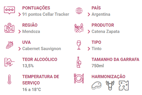 Em boca, o Vinho Angelica Zapata Cabernet Sauvignon é elegante e estruturado, contando com taninos redondos e um final longo e persistente.